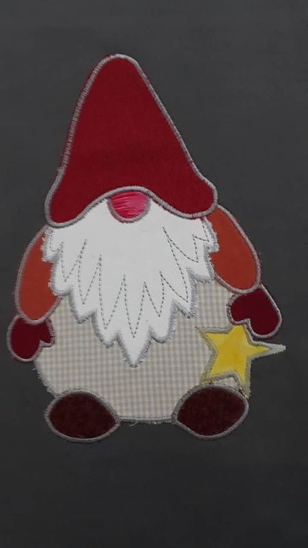 Stickdatei/Applikation für einen süßen Wichtel! Das Motiv eignet sich wunderbar für Topflappen, Kissen, Tischdecken und -läufer. (s.https://www.crazypatterns.net/de/items/43037/wichteltopflappen)