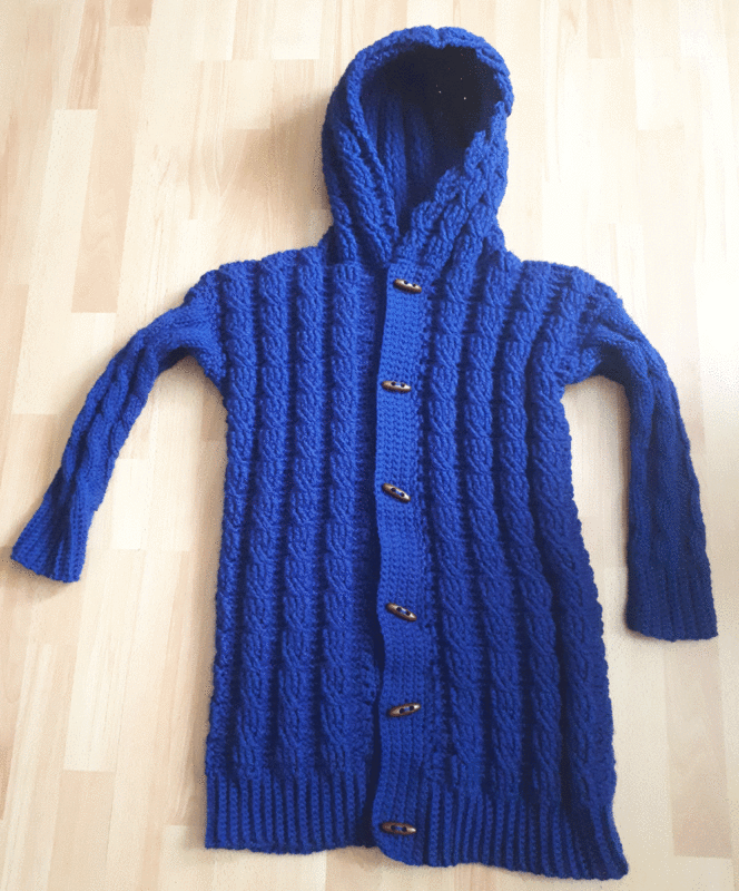 Bei dieser schönen Jacke habe ich häkeln und stricken zusammen vereint. Vorder- und Rückenteil sind gehäkelt und die Ärmel sind gestrickt. Ich finde diese beiden Komponente passen sehr gut zusammen und sehen super aus. Ich habe diese Jacke für meine Tochter angefertigt. Sie möchte sie am liebsten gar nicht mehr ausziehen.
