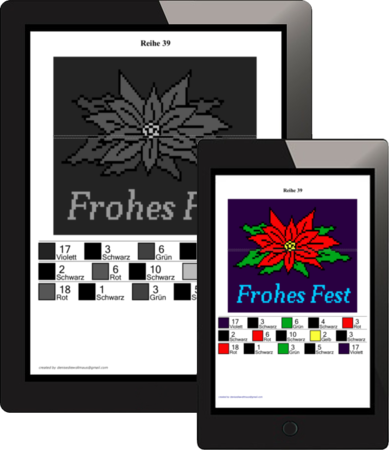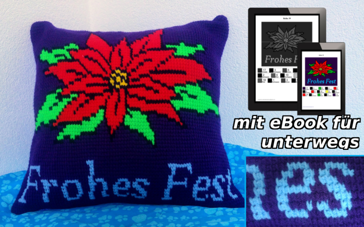 Die Anleitung enthält zusätzlich eine PDF Datei mit der genau abgezählten Maschenanzahl jeder Farbe pro Reihe. Diese Datei kann auf den eBook-Reader oder das Smartphone geladen werden um auch unterwegs bequem häkeln zu können. :)