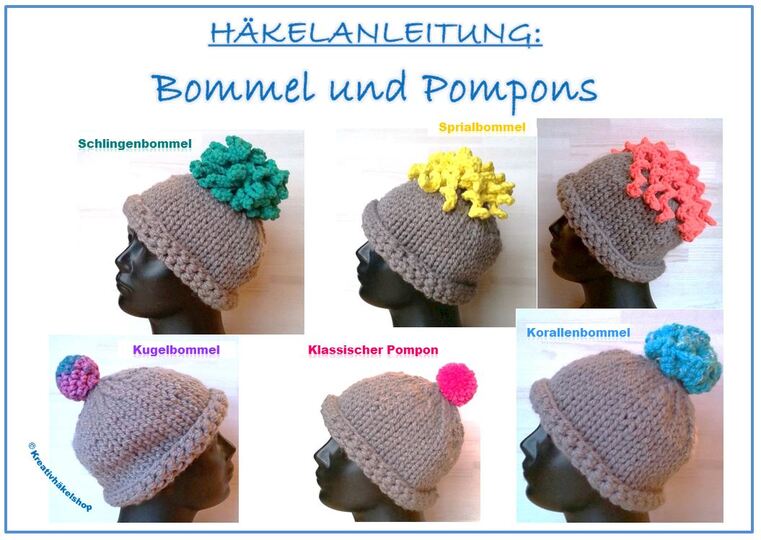 In dieser Häkelanleitung finden Sie 5 verschiedene Bommelvarianten zum Häkeln: