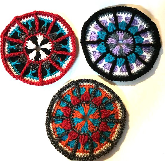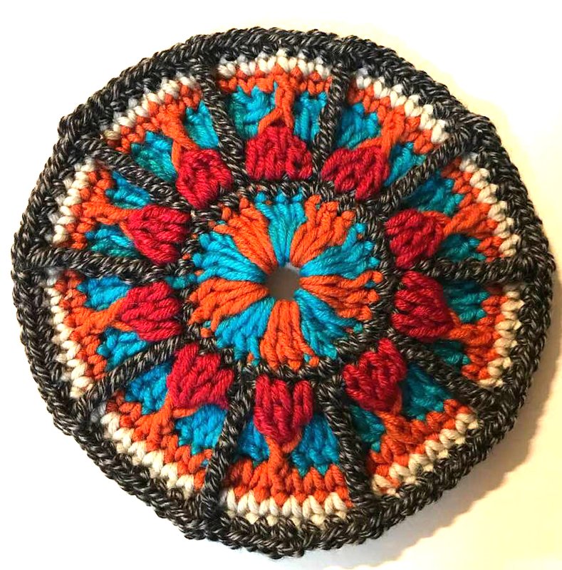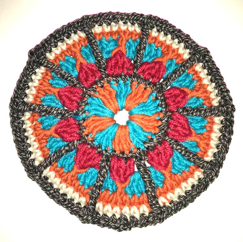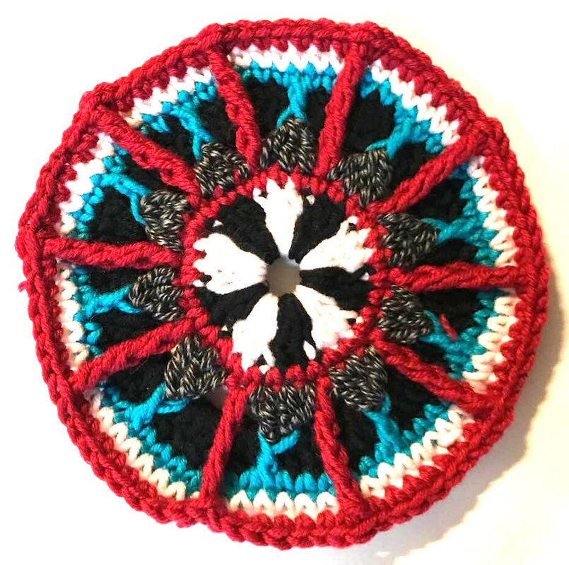 Der nette Glas oder Topf- Untersetzter KREISRAD ist eine schöne Handarbeit und sieht auf dem Tisch sehr schön aus...man kann den Untersetzter auch aus sehr dicker Baumwolle-Wolle machen, dann ist der Untersetzter KREISRAD auch für heiße Töpfe geeignet..Auch als beginn eines Mandalas ist das schöne Muster ideal.