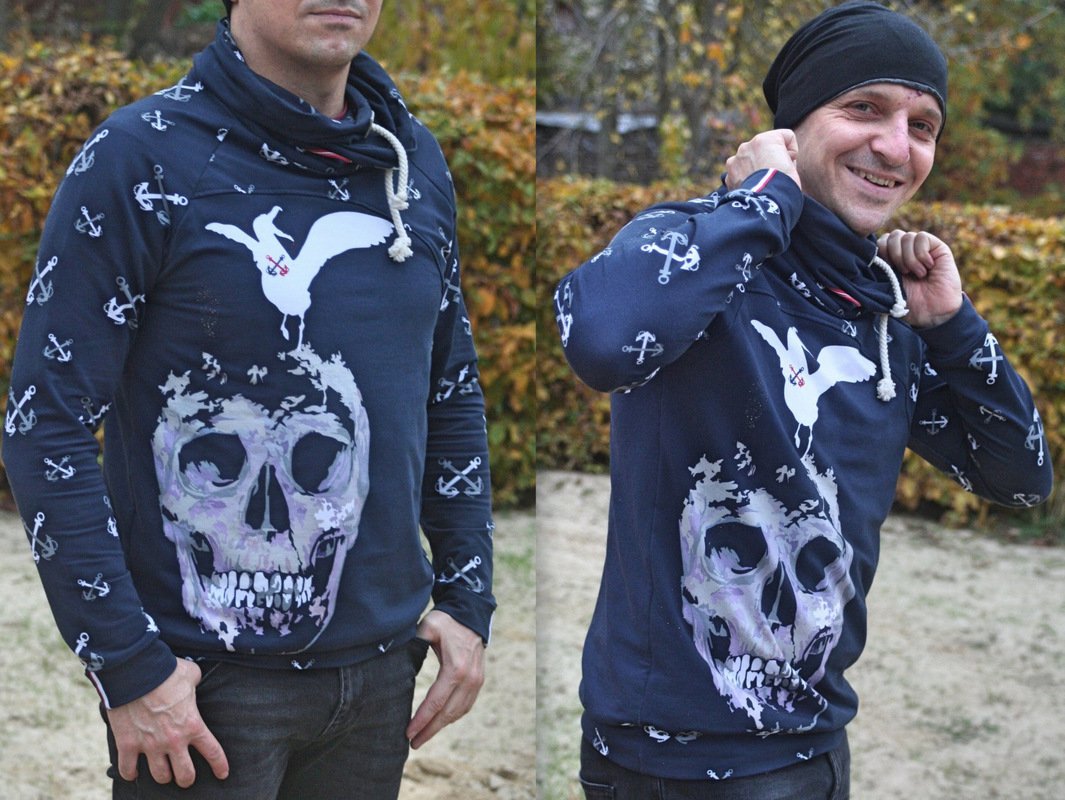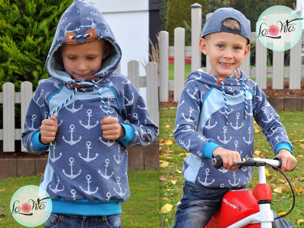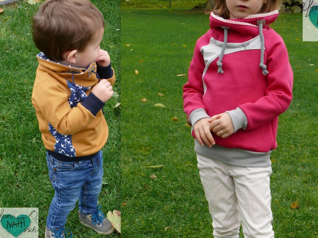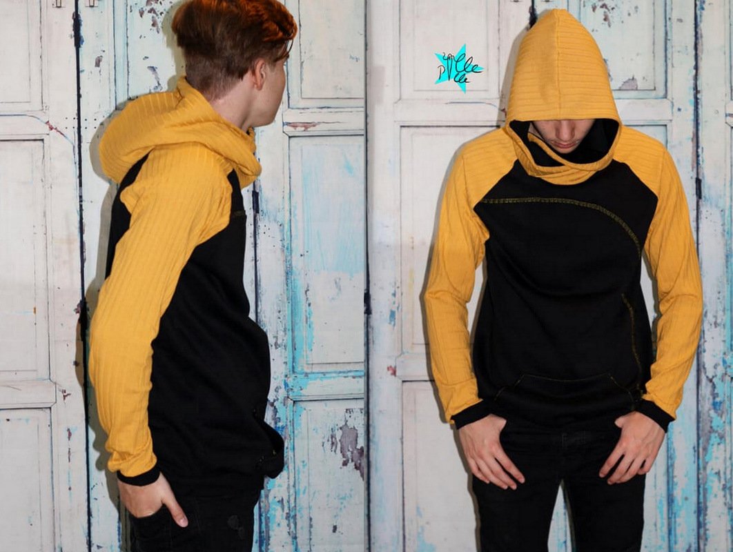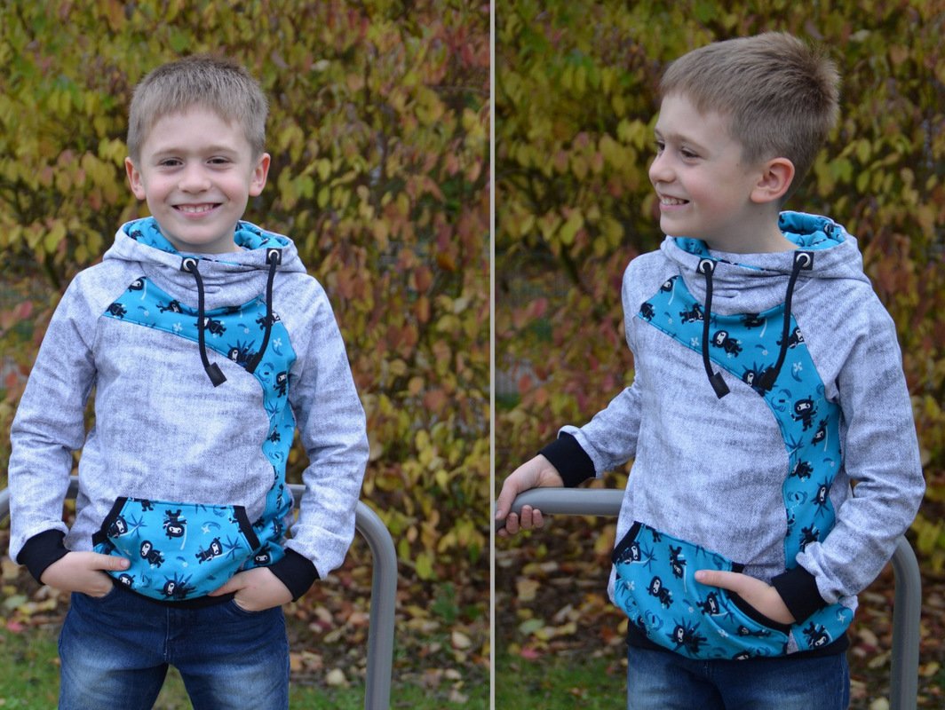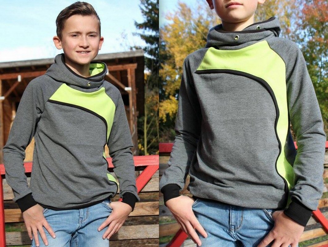 Du kannst den Hoodie mit Kragen oder Kapuze, mit oder ohne Tasche, mit oder ohne Teilung nähen.