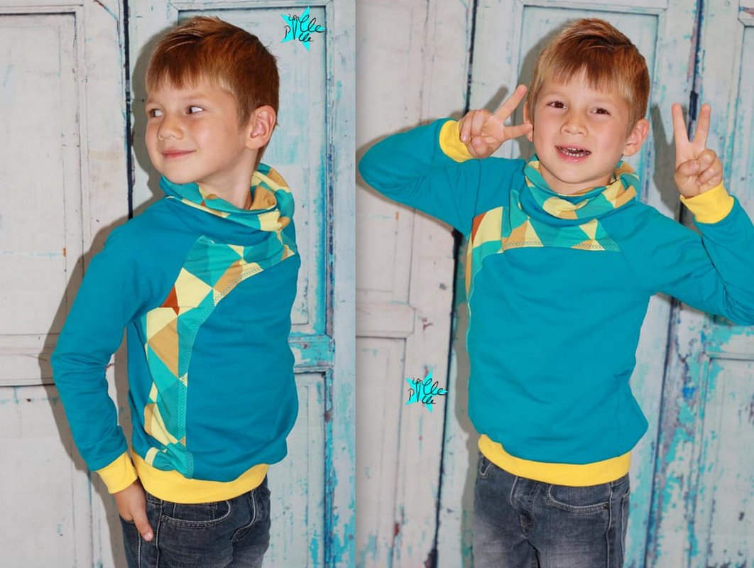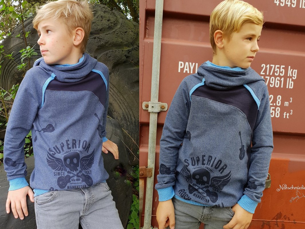 Ich nähe ihn gern aus Sweat, Alpenfleece oder Jersey. Es sollten aber nur dehnbare Stoffe verwendet werden.
