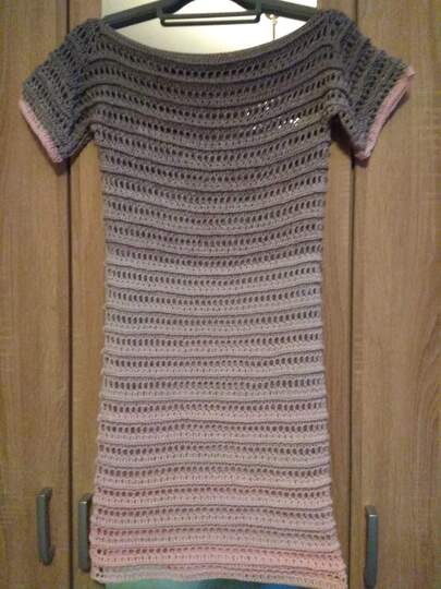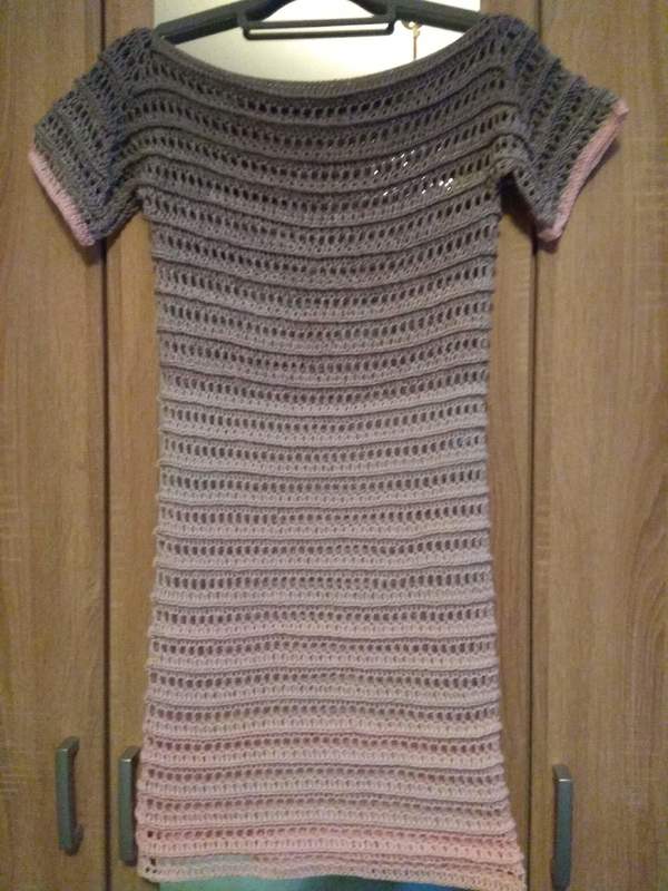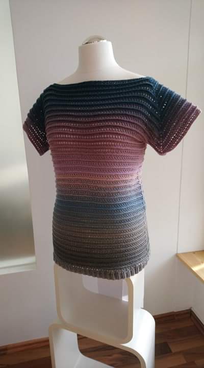 Die Anleitung ist für ein gehäkeltes Kleid mit U-Boot-Ausschnitt. Es kann aber auch kürzer als Tunika gearbeitet werden.