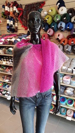 Das Tuch Feen-Tau ist für kleine und große Prinzessen genau das Richtige. Durch das Material, zwei Seide-Mohair-Bobbel von Rellana, wird das Tuch locker und fluffig und zu dem auch noch wärmend. Die Maße des halbrunden Tuchs sind ca. 52 x 165cm, schmeichelt also schön um den Hals.
