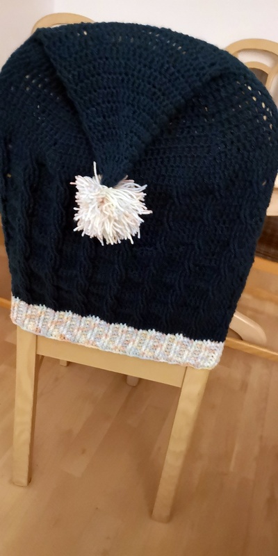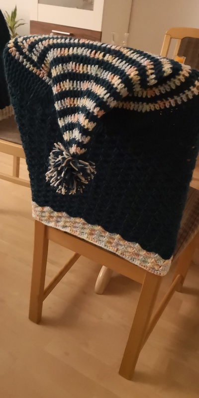 Verwendet wurden 265 gr von der Gründl Big Mamma, gehäkelt mit Ns 4,5. Ein Knäul hat ein Gewicht von 400 gr auf 1040 m.