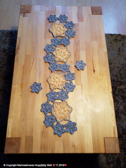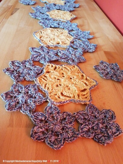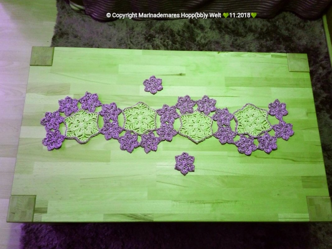 ein wunderschöner Tischläufer, den sie ganz nach ihrer Wunschlänge häkeln bzw. erweitern können.