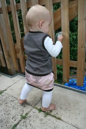 Bestehend aus einem Minirock und einer Wendeweste kann es je nach gewählten Material zu jeder Jahreszeit getragen werden.