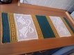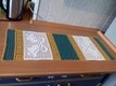 Der Tischläufer wurde mit einer Häkelnadel 2,5 und der Wolle Drops love you 9 in Senf, Grün und Natur gearbeitet. LL 125m / 50g. Wer fest häkelt, nimmt eine Nadelstärke größer.