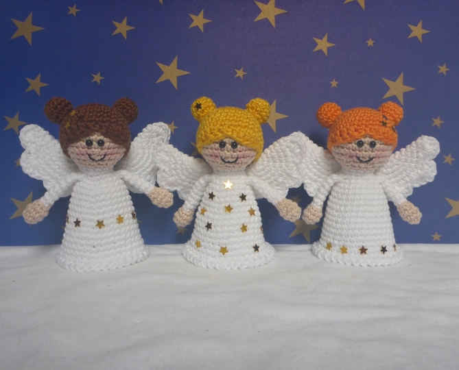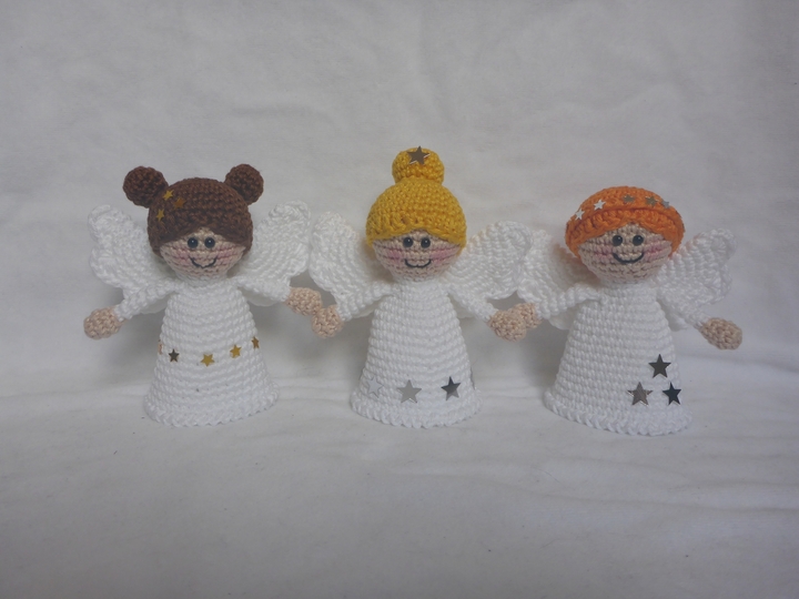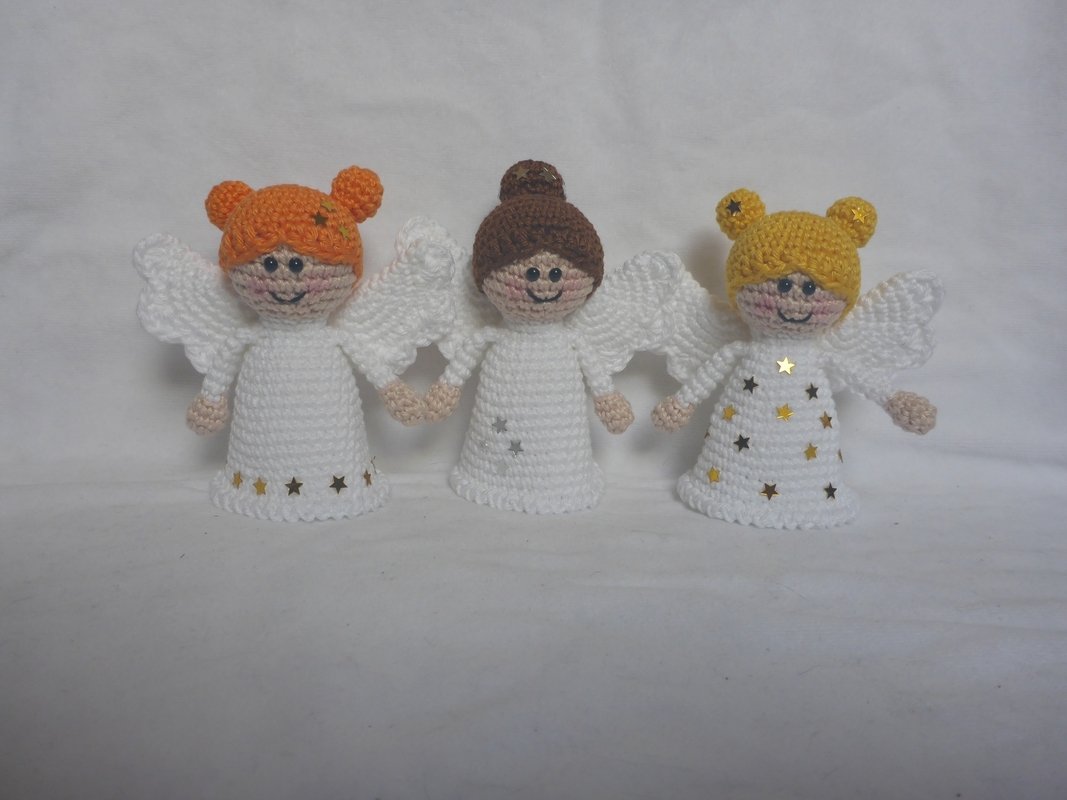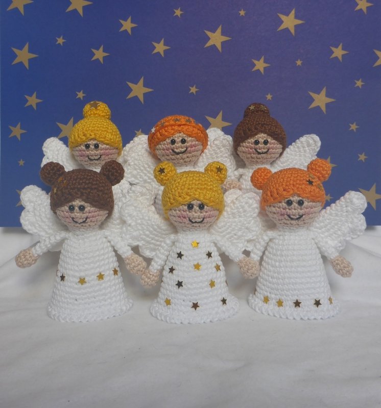 Angeboten wird hier eine ausführliche und gut bebilderte Häkelanleitung für die kleinen Engel, nicht die fertigen Engel. Die Anleitung umfasst 9 Seiten.