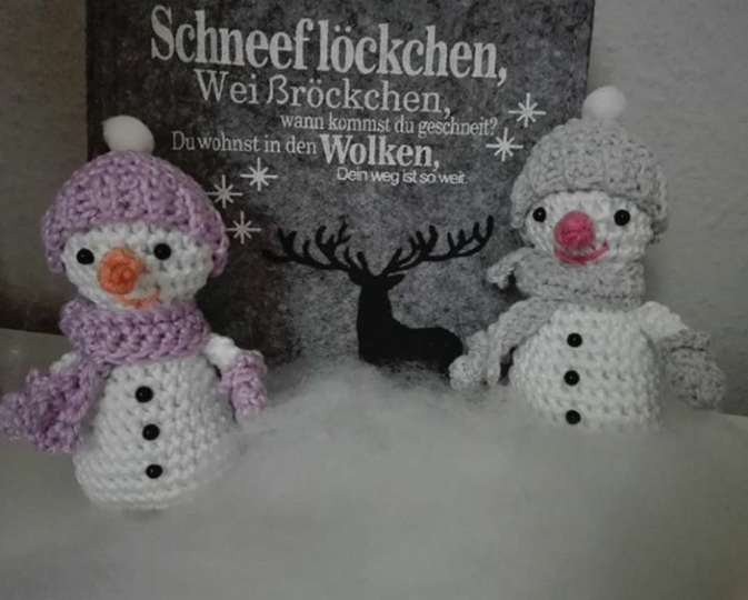 Keine bebilderte Schritt-für-Schritt-Anleitung. Häkelkenntnisse sollten daher vorhanden sein. Da der Schneemann recht klein ist, wird viel Fingerspitzengefühl benötigt. Für Häkelanfänger deswegen nicht geeignet.