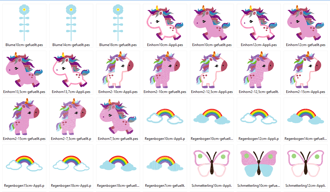 ♥ Stickdatei für allerliebste Einhörner und Schmetterlinge die unterm Regenbogen tanzen ♥