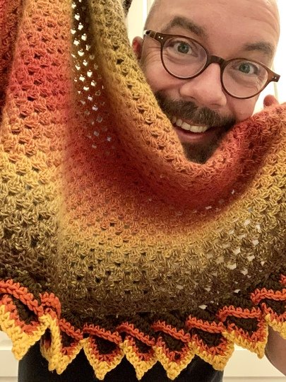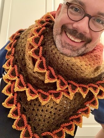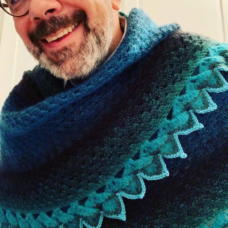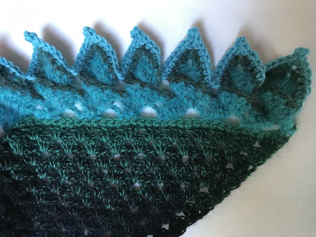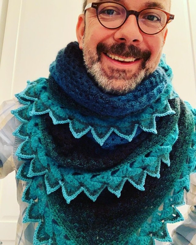 Mit dieser reich bebilderten Anleitung kannst Du dieses wunderschöne Dreieckstuch ganz einfach nacharbeiten. Gezeigt wird hier die blau-türkisfarbene Version, und die braun-orange-ockerfarbene Version, die sich lediglich in den Farben und den verschiedenen Materialien für die Abschlusskante voneinander unterscheiden. Der Hauptteil wird aus dem wunderbaren Merinogarn „Infinity Shawl“ von KATIA gearbeitet. Du solltest Luftmaschen, feste Maschen und Stäbchen können. Das Tuch hat eine Spannweite von circa 180cm. Viel Spaß beim Nacharbeiten wünscht Dir der Helmi :-)