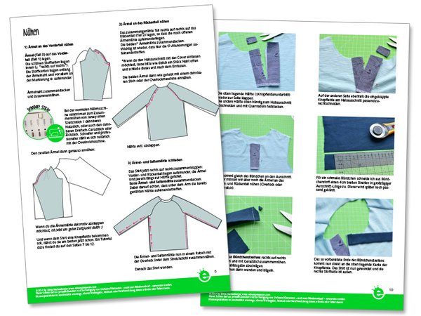 Schnittmuster und illustrierte Nähanleitung für ein Kinder-Raglanshirt