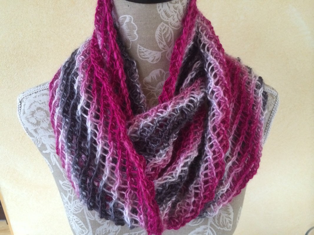 Dieser tolle Loop wird in Runden gestrickt, ohne störende Nähte, er lässt sich leicht 2 mal um den Hals legen.