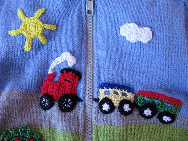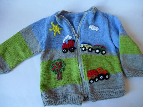 Alle kleinen Jungen lieben Eisenbahnen und Traktoren! Das ist die richtige Strickjacke für sie!