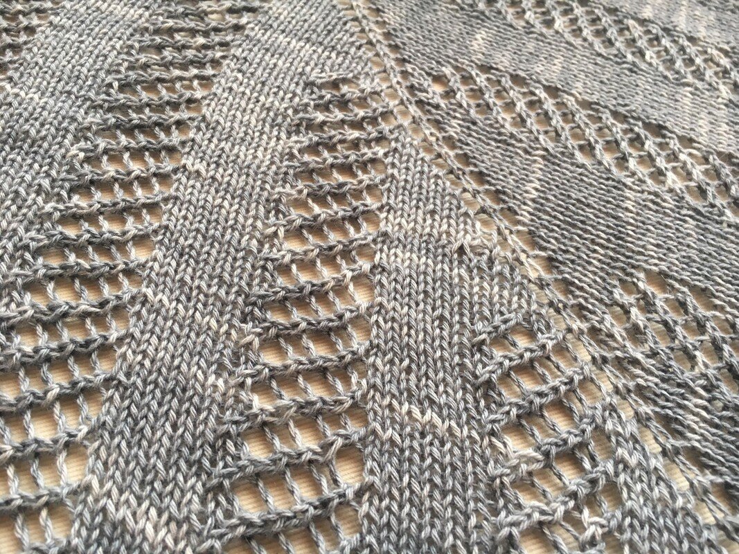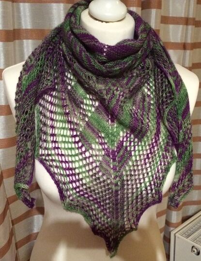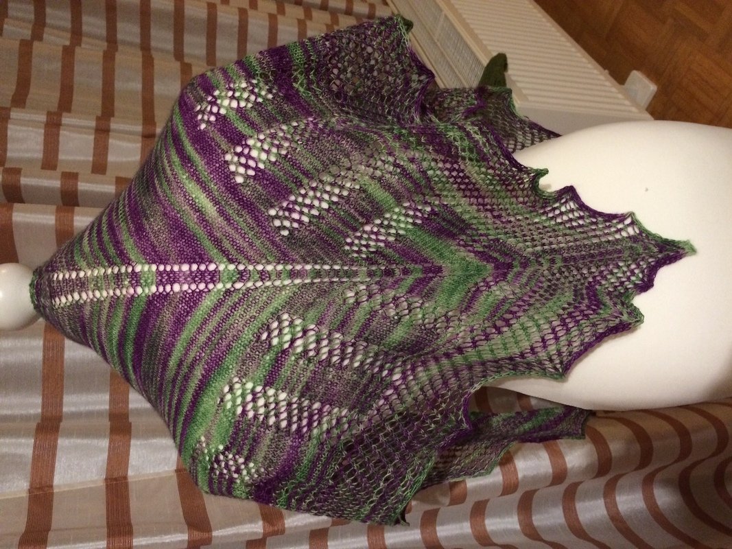 Ein tolles Lace Tuch mit vielen löchern, das nicht ganz Anfänger geeignet ist. Ich habe 200g Baumwoll Merino Mischgarn genommen, das ich selbst gefärbt habe.