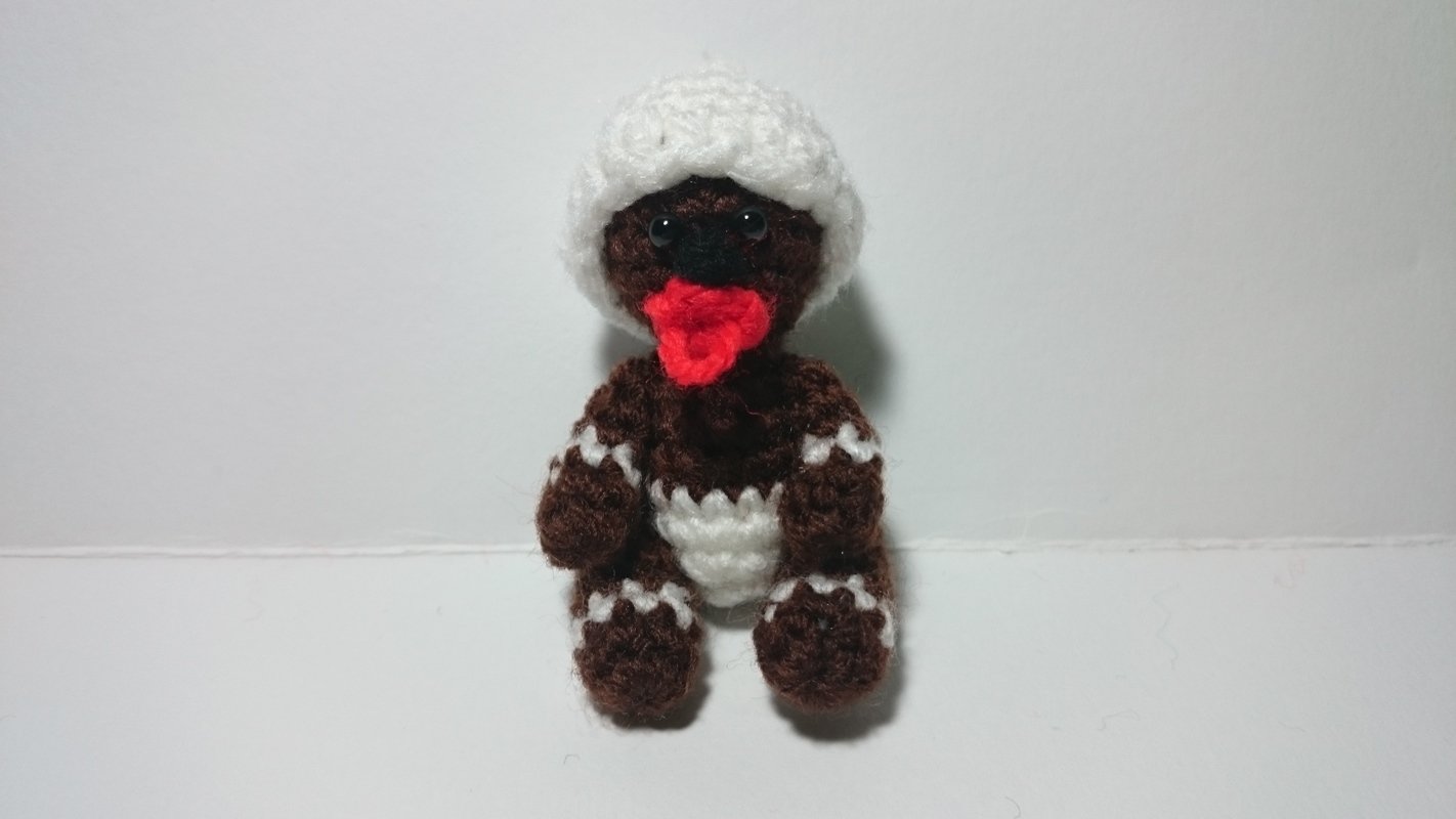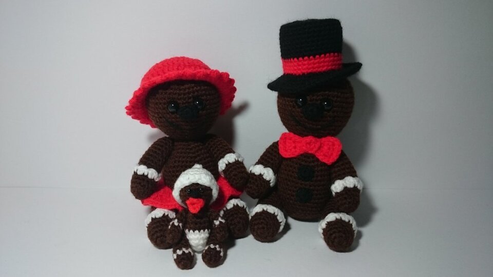 Wenn Du diese Wolle verwendest, werden die großen Lebkuchenmännchen ohne Hut ca. 18cm und das Baby ca. 8cm groß!