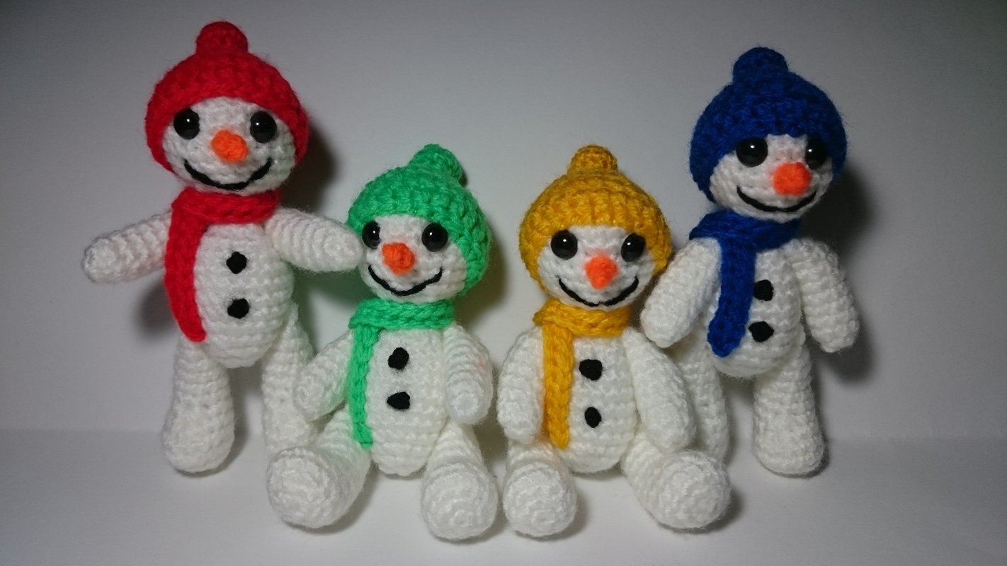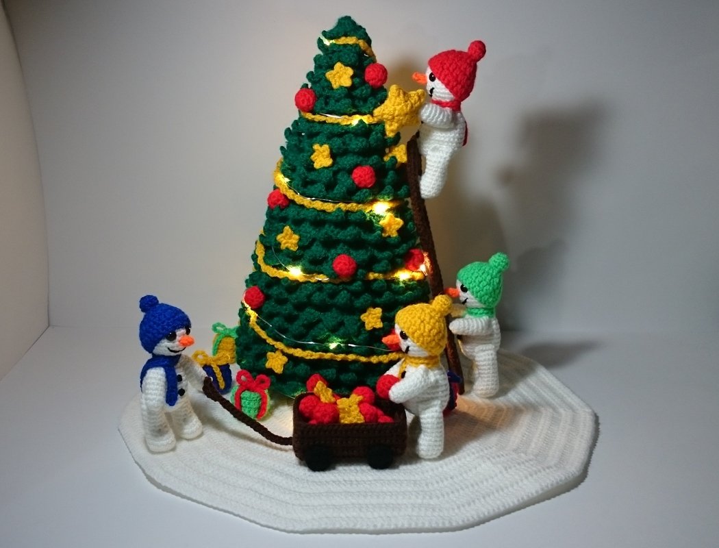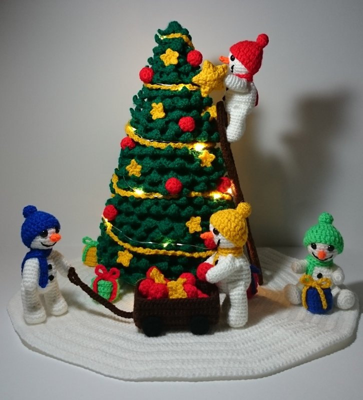 Wenn Du diese Wolle verwendest, wird der Weihnachtsbaum ca. 30cm und die Schneemänner ca. 12cm groß.