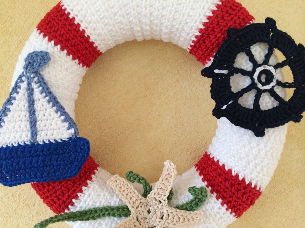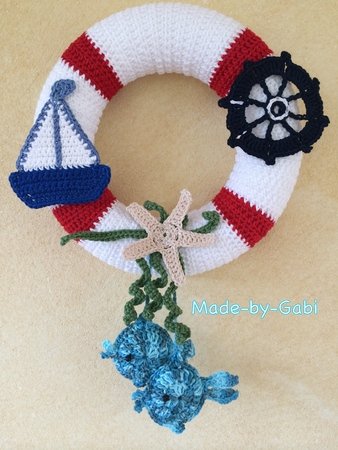 Dieser maritime Kranz kann als Tür- oder Wandkranz oder als Fensterschmuck dekoriert werden.