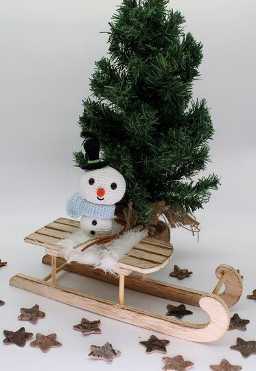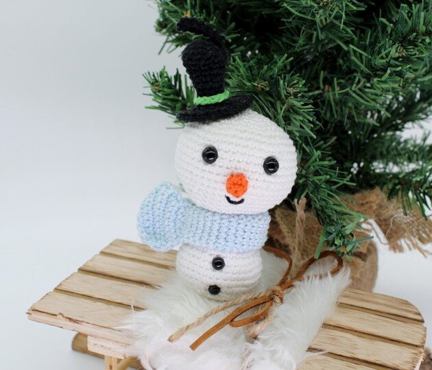 Mit dieser Häkelanleitung könnt ihr euch den im Artikelbild gezeigten Schneemann zaubern.