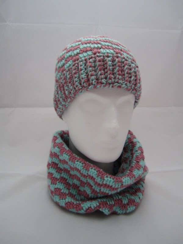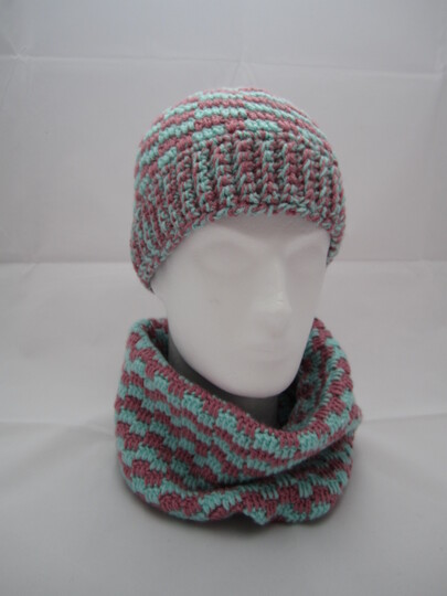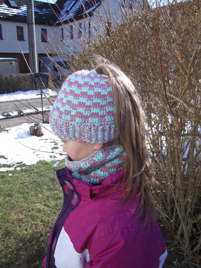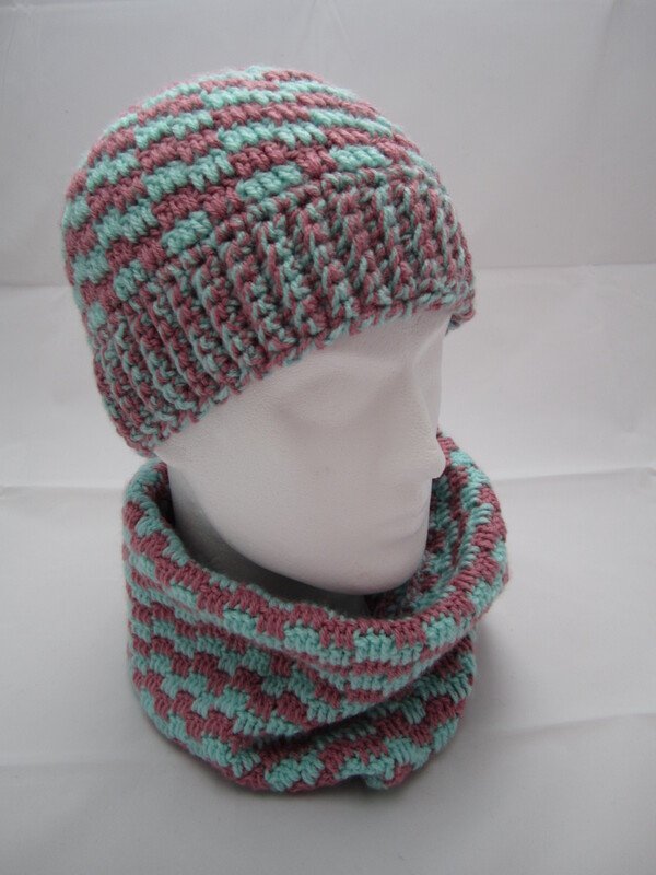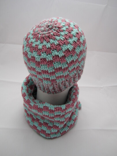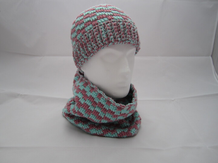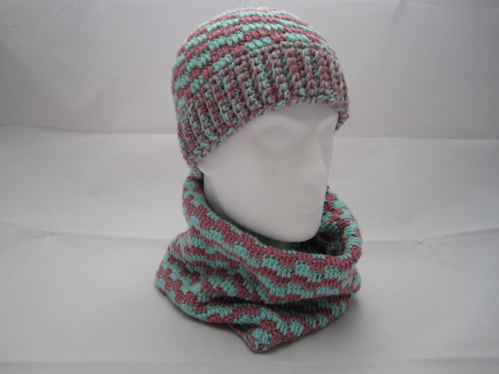 Dieses Set kann in jeder gewünschten Farbkombination gehäkelt werden und ist somit auf die persönliche Garderobe anpassbar. Durch das gehäkelte Karomuster sieht das Set super interessant aus und ist einfach ein Hinkucker.