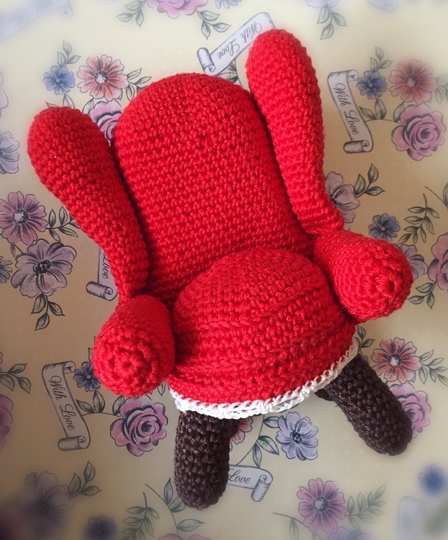 Die Anleitung ist auf 10 Seiten mit vielen Bildern in deutsch verfasst. Auch für Anfänger geeignet. Dieser Sessel ist ca.14cm hoch und 10cm breit.