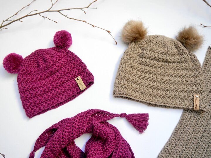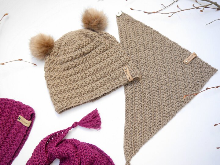 Es gibt viele Möglichkeiten, diese schicke Mütze und den lässigen Schal auch farblich zu gestalten. Hier wurde das beliebte Baumwollgemisch LILLY uni BIG No. 7 von WoolAffair verwendet, welches durch seine Beschaffenheit das Sternchenmuster besonders gut zur Geltung bringt.