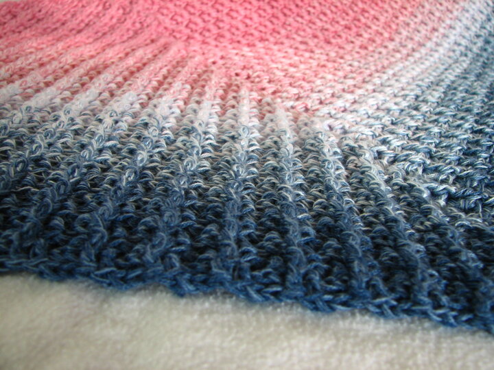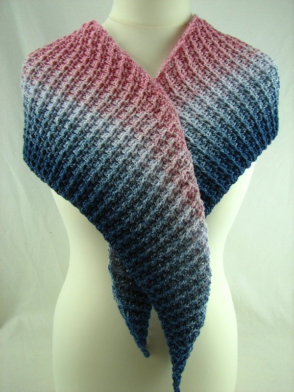 Das Tuch hat bei mir eine Spannweite von ca. 175 cm und eine Länge von ca. 40 cm. Es lässt sich aber ohne Probleme verkleinern oder vergrößern.