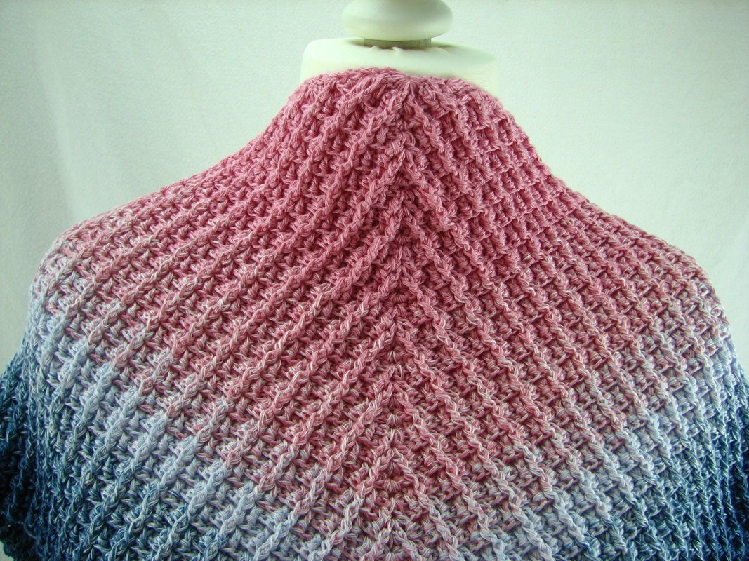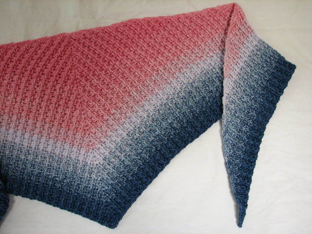 Mein Tuch "Berg und Tal" besteht aus vorderen und hinteren Reliefstäbchen und hat dadurch einen leichten 3D-Charakter. Das Muster ist leicht zu häkeln, es wiederholt sich alle 4 Reihen. Die Form des Tuchs ist schmal und länglich. Es lässt sich in entsprechenenden Farben auch gut von Männern tragen.