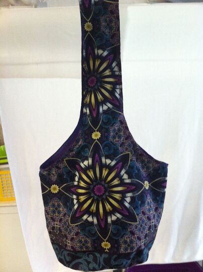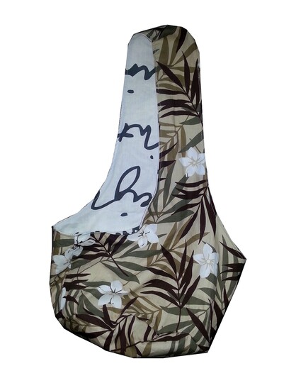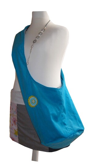 Die Beuteltasche kann gewendet werden. Somit kannst Du 2 verschiedene Stoffe wählen.
