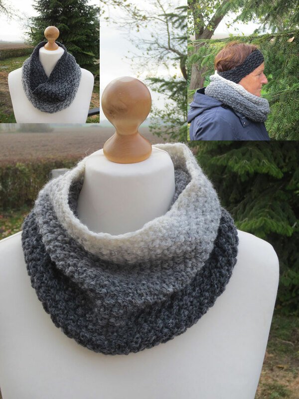 Strickanleitung für ein tolles Herbst/Winter Set aus Loop und Stirnband, gestrickt aus nur einem Knäuel Wolle. Der Farbverlauf ist sehr harmonisch abgestimmt und gefällt mir sehr. Je nachdem wie man möchte, trägt man eben die dunkle oder die helle Seite oben.