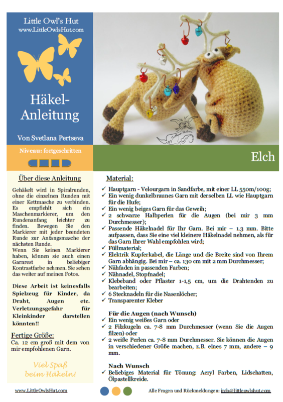 Vervielfältigung und Veröffentlichung dieser Anleitung – mechanisch, elektronisch oder auf andere Weise einschließlich Fotokopie - ohne schriftliche Genehmigung ist untersagt! Ich arbeite sehr hart, um diese Anleitungen zu entwerfen und zu Papier zu bringen. Vielen Dank für Ihr Verständnis, und viel Spaß beim Häkeln!