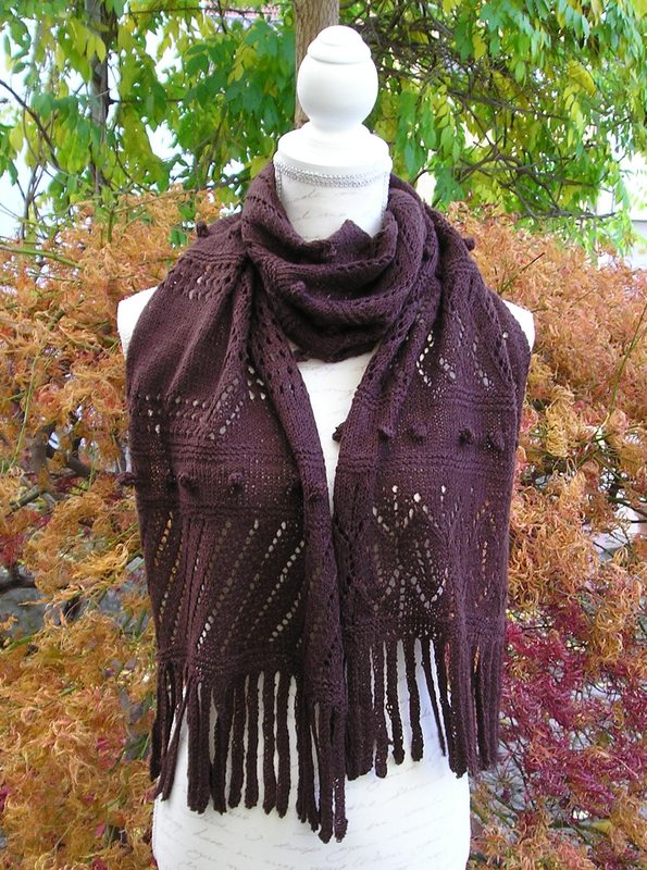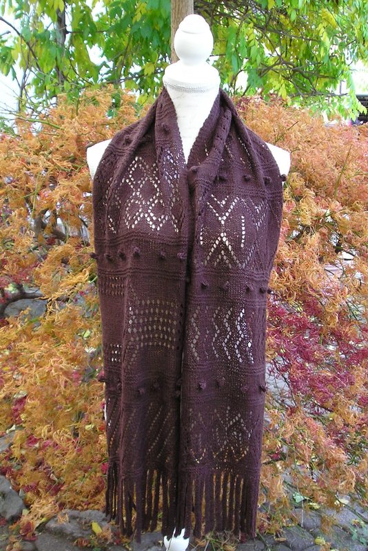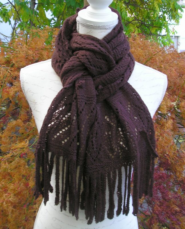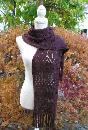 Anleitung zum Stricken des Schals "Bitterschokolade" mit verschiedenen Lochmustern.