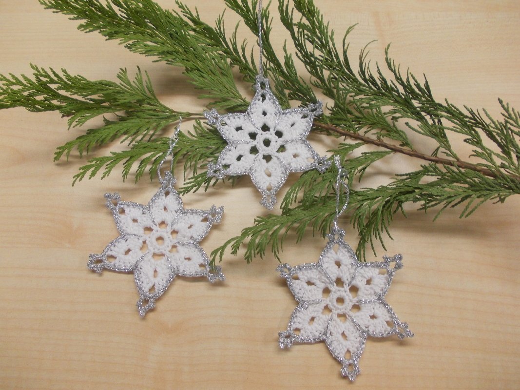 Sie werden schnell und einfach in der Runde gehäkelt. Wenn Sie ganz viele von diesen reizenden Schneeflöckchen häkeln, haben Sie die Möglichkeit, sie zusammen zu nähen und erhalten so ganz individuelle Deckchen. Dabei ist jede Größe möglich. Und das Beste daran - es wird nicht viel Garn benötigt. Garnreste sind also herzlich willkommen.