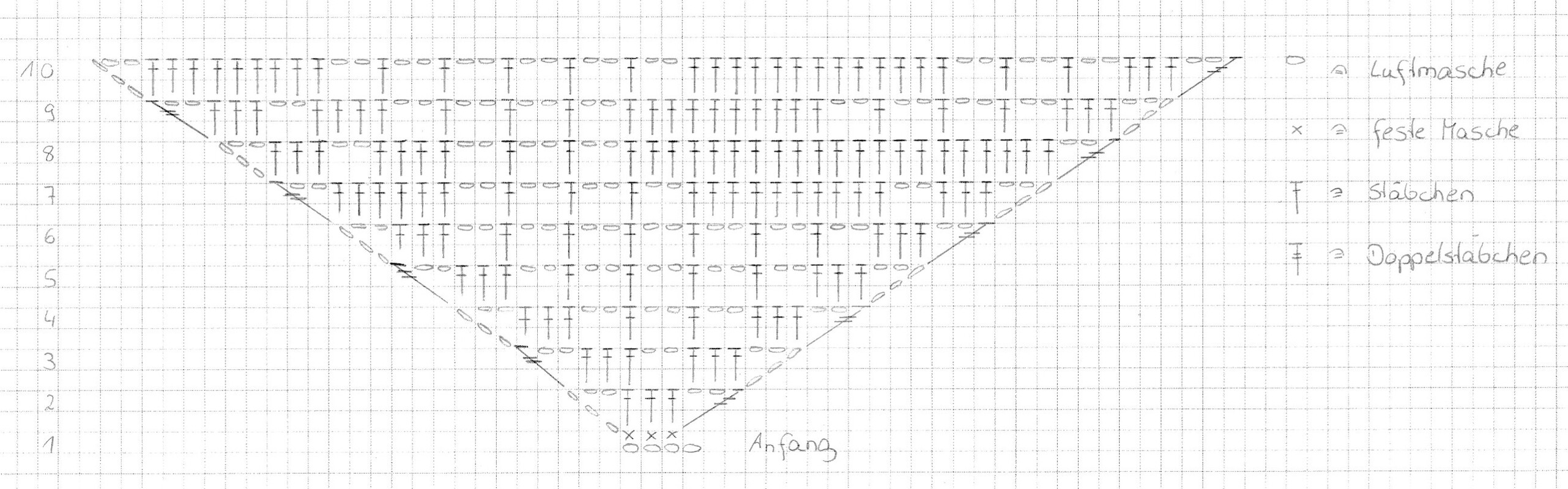 Es werden folgende Maschen verwendet: Luftmaschen = Lfm Stäbchen = Stb feste Maschen = fM Maschen = M Doppelstäbchen = Dstb