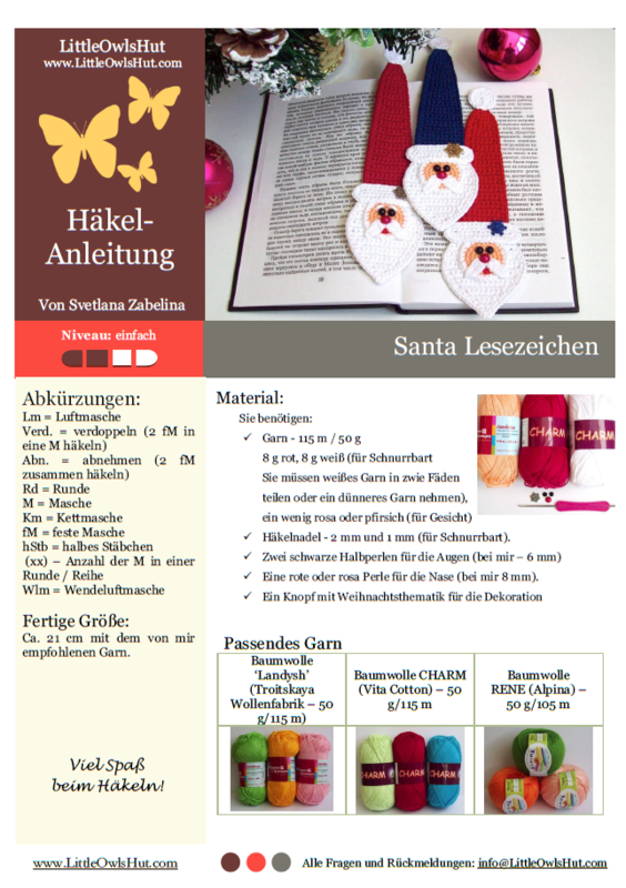 Vervielfältigung und Veröffentlichung dieser Anleitung – mechanisch, elektronisch oder auf andere Weise einschließlich Fotokopie - ohne schriftliche Genehmigung ist untersagt! Ich arbeite sehr hart, um diese Anleitungen zu entwerfen und zu Papier zu bringen. Vielen Dank für Ihr Verständnis, und viel Spaß beim Häkeln!