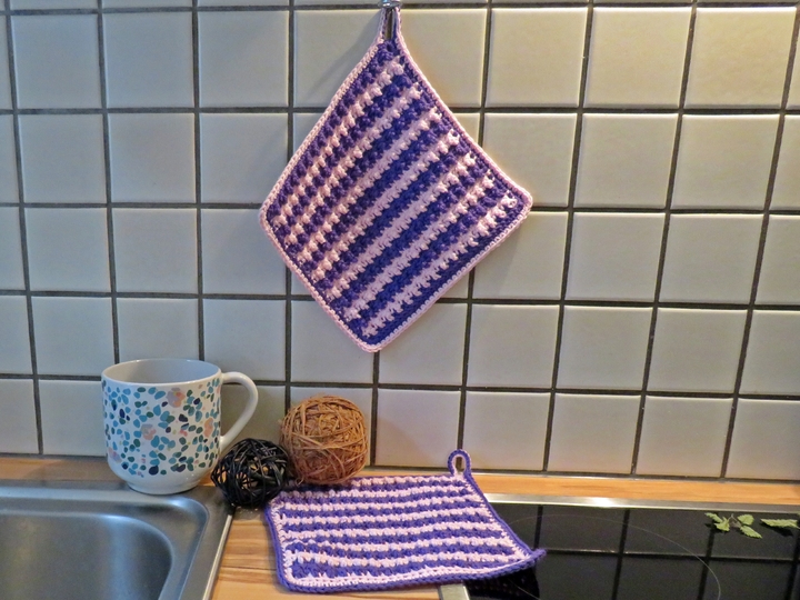 Topflappen sind immer gute Projekte, mit denen man schnell fertig wird, daher auch als Geschenk sehr zu empfehlen.