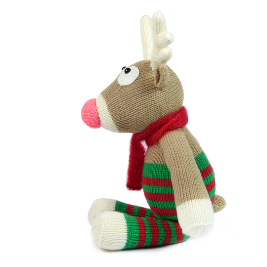 Rentier Paule guckt ein bisschen traurig, denn er ist zu klein, um vor den Schlitten des Weihnachtsmannes gespannt zu werden. Da ist es ihm ein großer Trost, dass er trotzdem bald unterm Weihnachtsbaum auf seinen neuen Menschenfreund warten darf. Paule mag übrigens am liebsten Plätzchen und Lebkuchen – daher rührt auch sein hübsches rundes Bäuchlein.