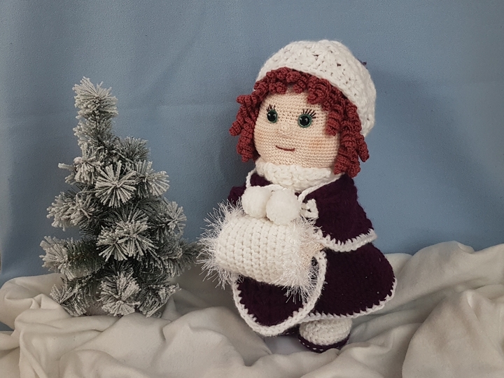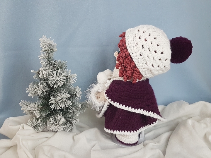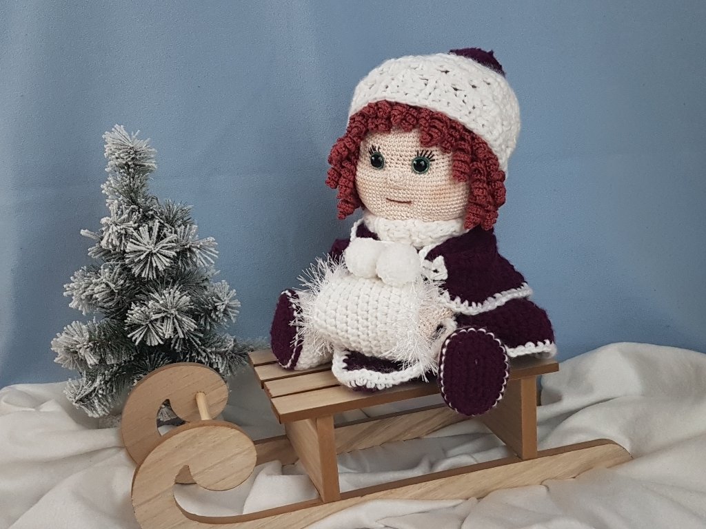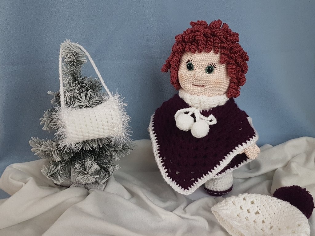 Die PDF beinhaltet die Anleitung für die Puppe, den Poncho, den Rock, die Bluse, das Höschen, die Stiefeln sowie für die Mütze und den Handmuff.