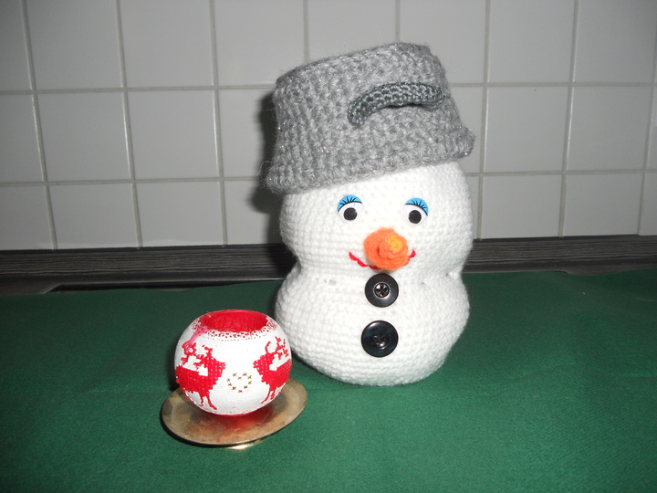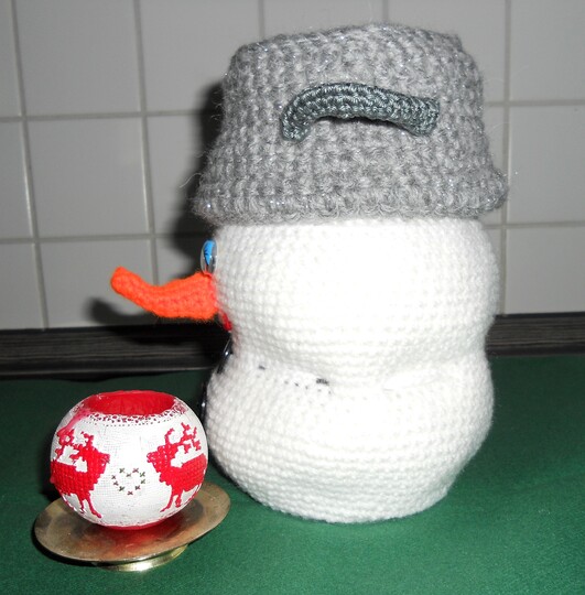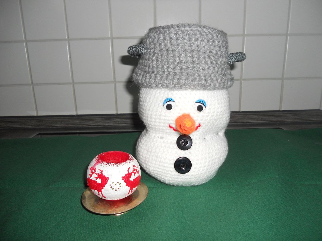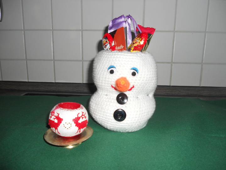 Diese Anleitung beschreibt auf 4 Seiten wie Du einen Schneemann häkelst deren Innenleben eine Dose ist,ca. 13cm hoch und 8cm im Durchmesser. Mit Süßem oder kleinen Geschenken gefüllt, ist der Schneemann ein tolles Mitbringsel.