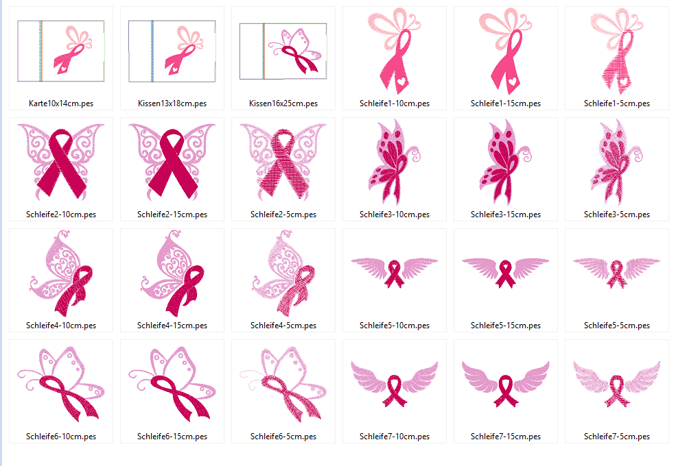 Im Set sind 7 Motive in je 5, 10 und 15cm und 2 Kuschelkissen Dateien in 13x18 und 16x25cm