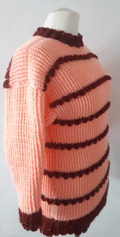 Das Modell besteht aus einer bebilderten und genau beschriebenen Pdf-Anleitung (20 Seiten) zum Häkeln des Pullovers.
