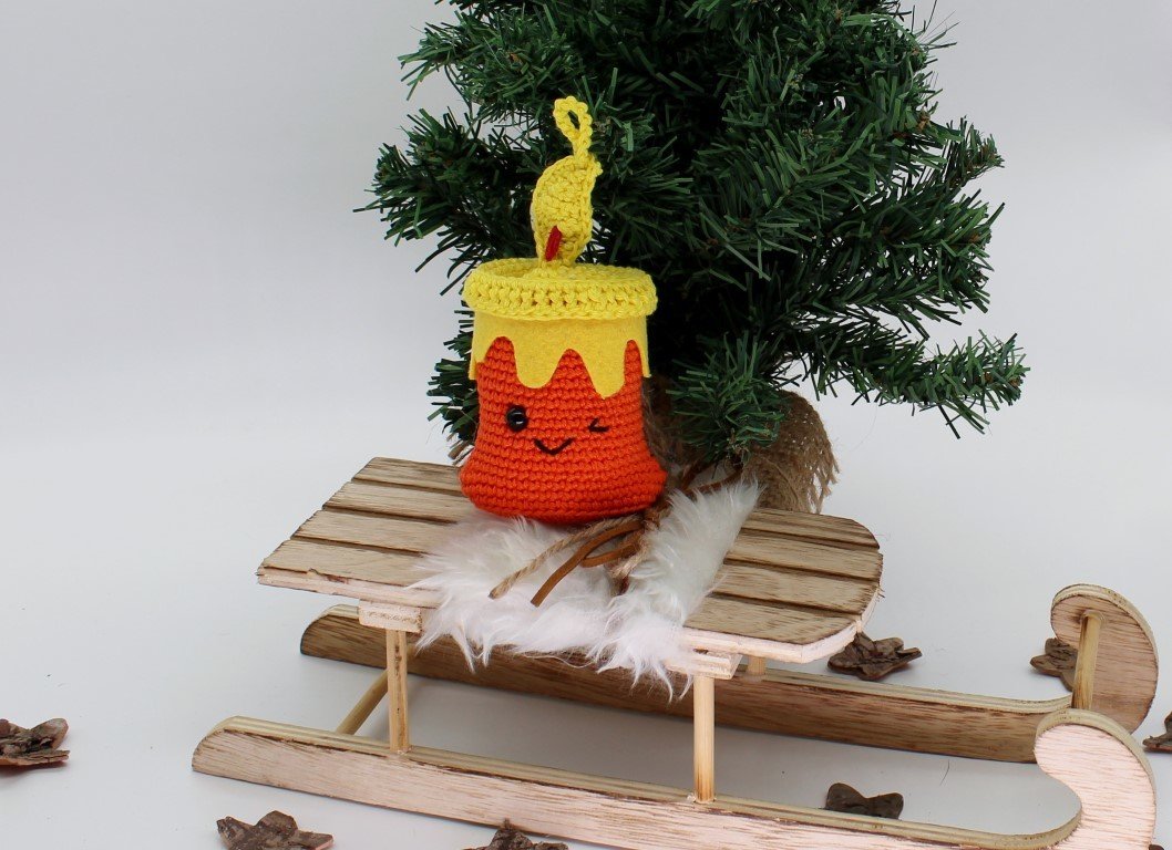 Mit dieser Häkelanleitung könnt ihr euch die im Artikelbild gezeigte Kerze zaubern.