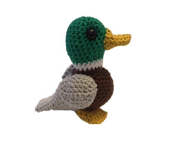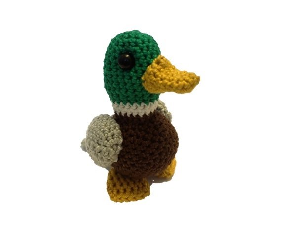 Die fertige Ente wird ca. 9cm hoch. Natürlich kann die Größe variieren, je nachdem ob man fest oder locker häkelt. Auch die Wahl der Wolle ist entscheidend.