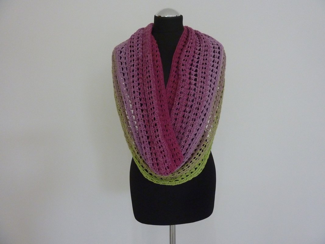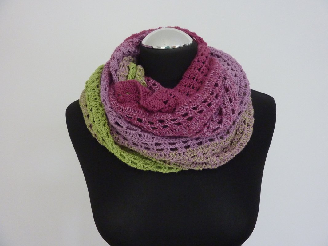 Der Loop "Azalee" erinnert mit seinen Farben an ein Blütenmeer in pink und grün.
