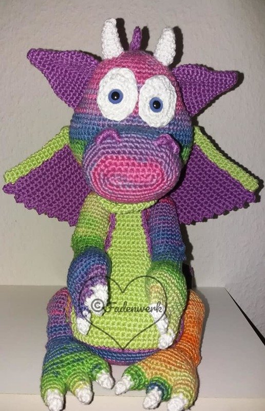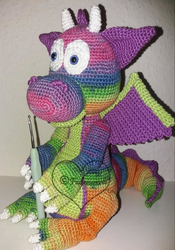 15 Seiten bebilderte Häkelanleitung für diesen kleinen, niedlichen Drachen.