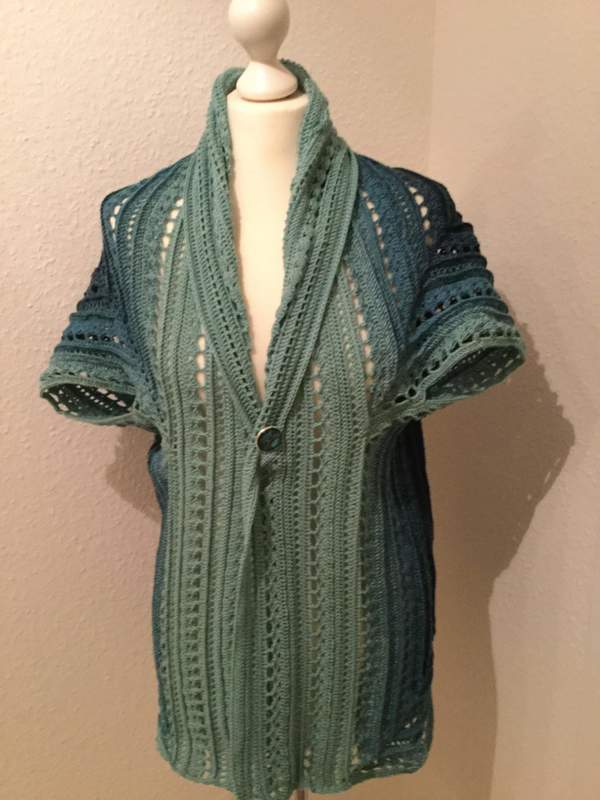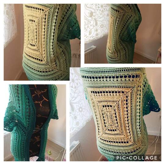 Je nach Größe die Ihr arbeiten wollt braucht Ihr eine andere Lauflänge. Dies ist auch in der Anleitung angegeben. Ich habe für Größe 38 1500m Lauflänge eines Farbverlaufgarns benötigt. Pro Konfektionsgröße größer oder kleiner braucht Ihr ca. 150m mehr oder weniger.