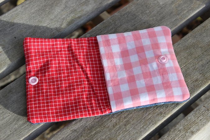Die fertige Geldbörse hat eine Größe von 10 x 9cm und hat innen 2 Fächer.