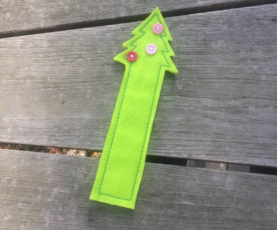Ein Tannenbaum als Lesezeichen-Datei d.h. es wird komplett in der Stickmaschine hergestellt.